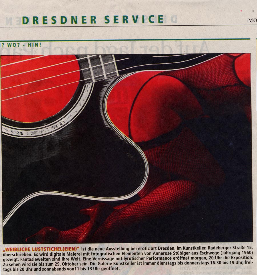 Ankündigung der Vernissage "Weibliche Luststicheleien"